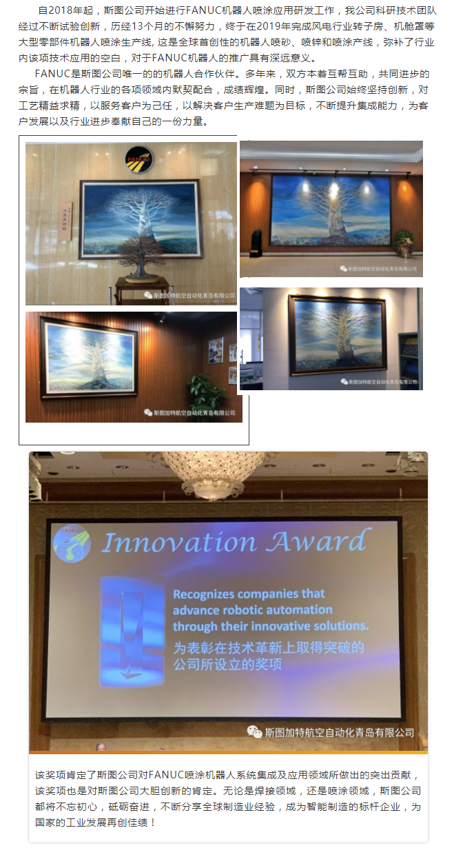 热烈祝贺J9九游获得发那科机器人全球创新奖