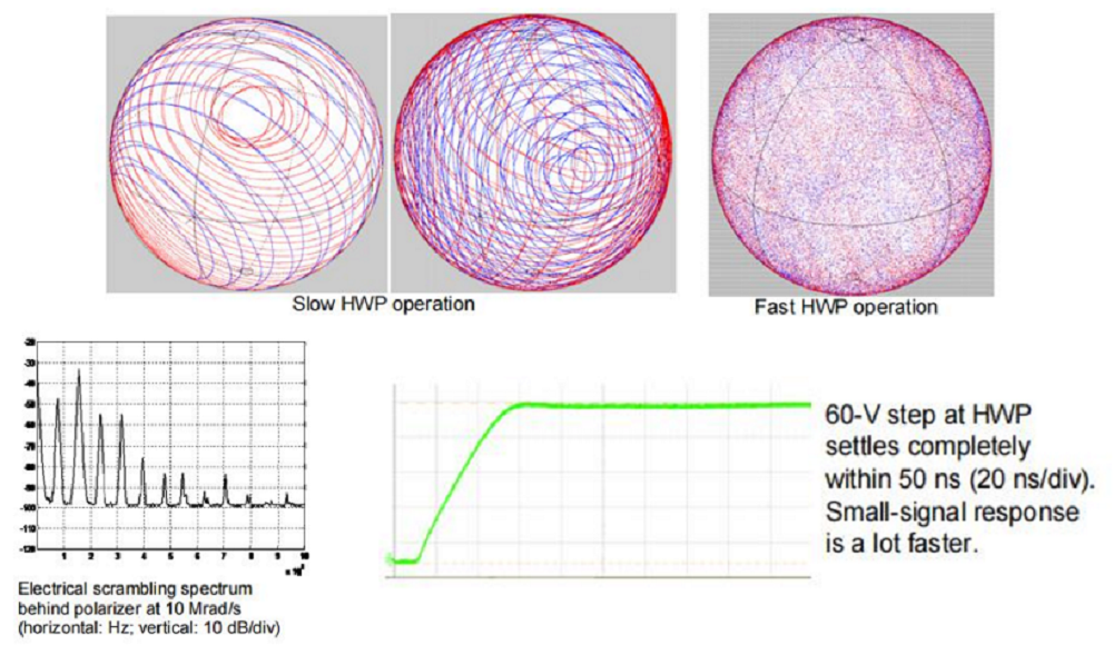 EPS1000是一款基于旋转速度可调的电光波片,超快无端光学偏振加扰速度高达 10000 krad/s(20000 krad/s,精度降低;更多根据要求提供。40 ns 时钟周期(= 更新间隔)即使在高加扰速度(例如,以 500 krad/s 的 0.02 rad 步长)也能确保连续、准稳定的极化变化。